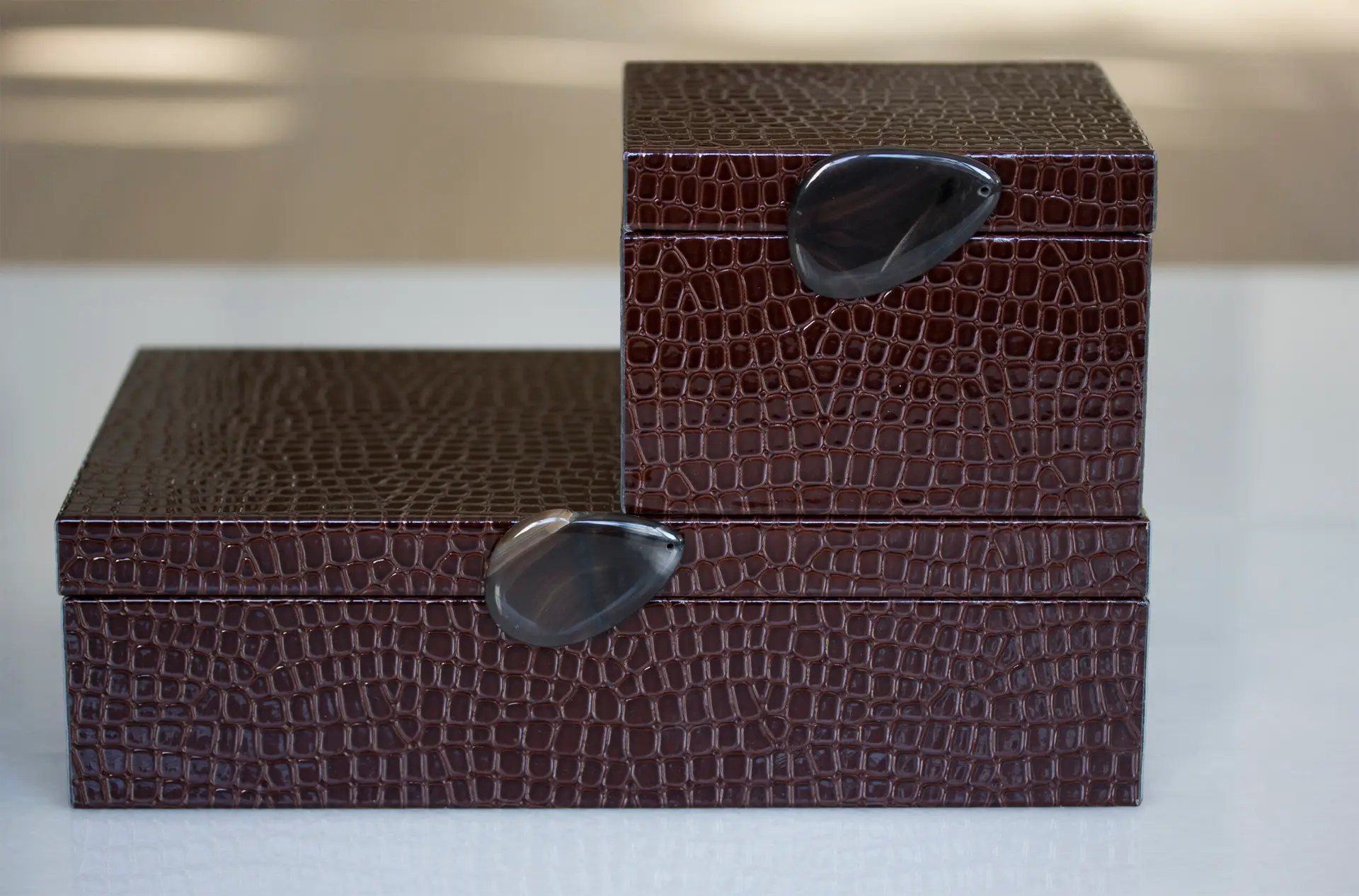 Sepete Ekle Büyük Boy Kahverengi Kroko Desenli Parlak Suni Deri Kutu – El Yapımı Dekoratif Organizer2,500 ₺