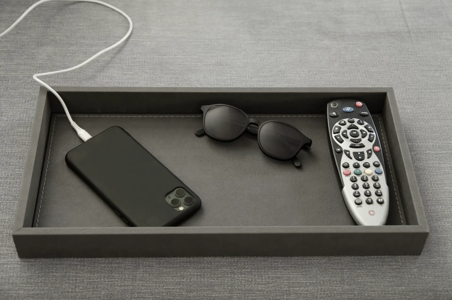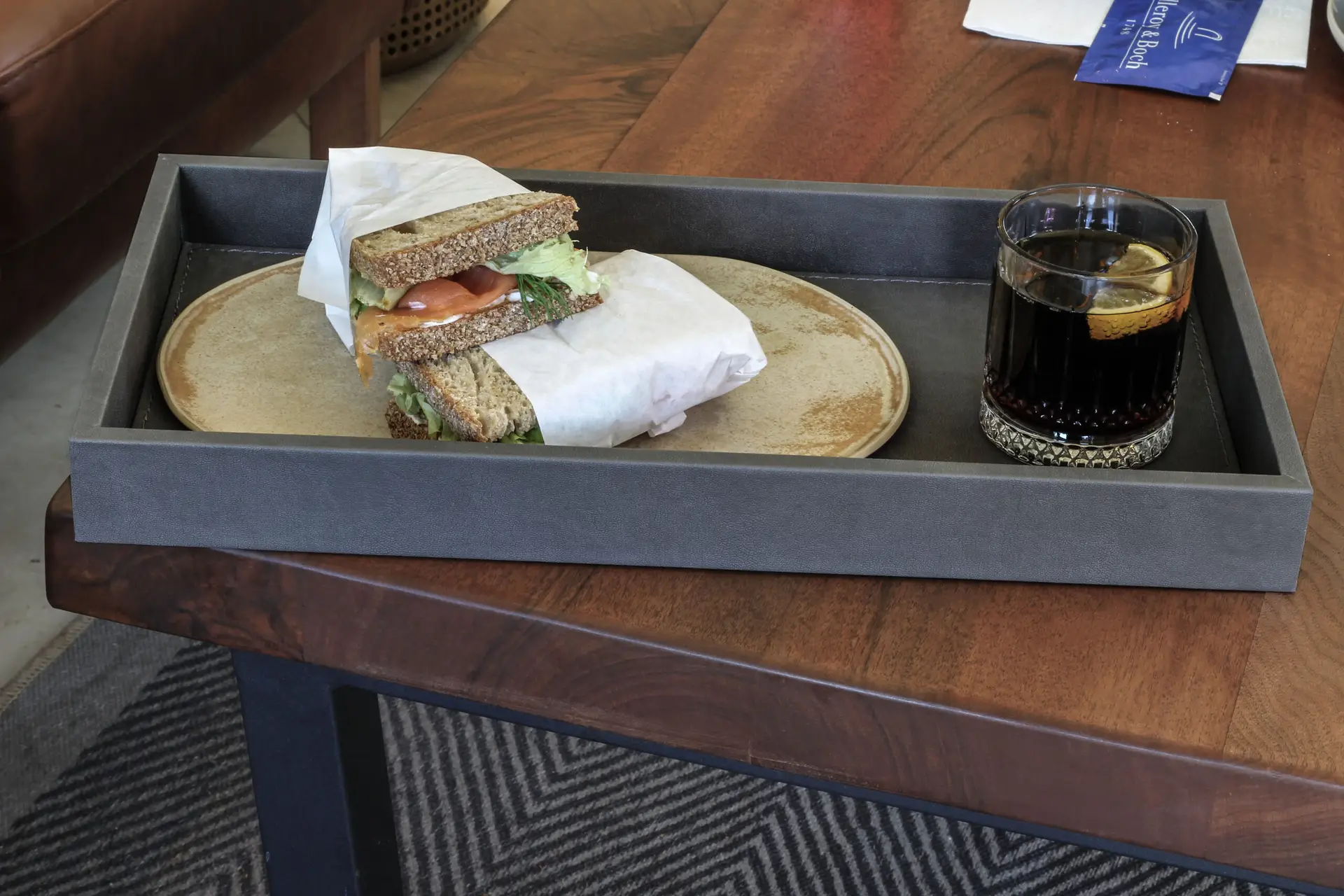 Büyük Boy Antrasit Renk Suni Deri Tepsi