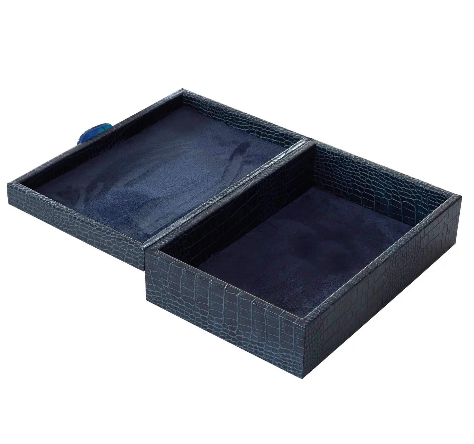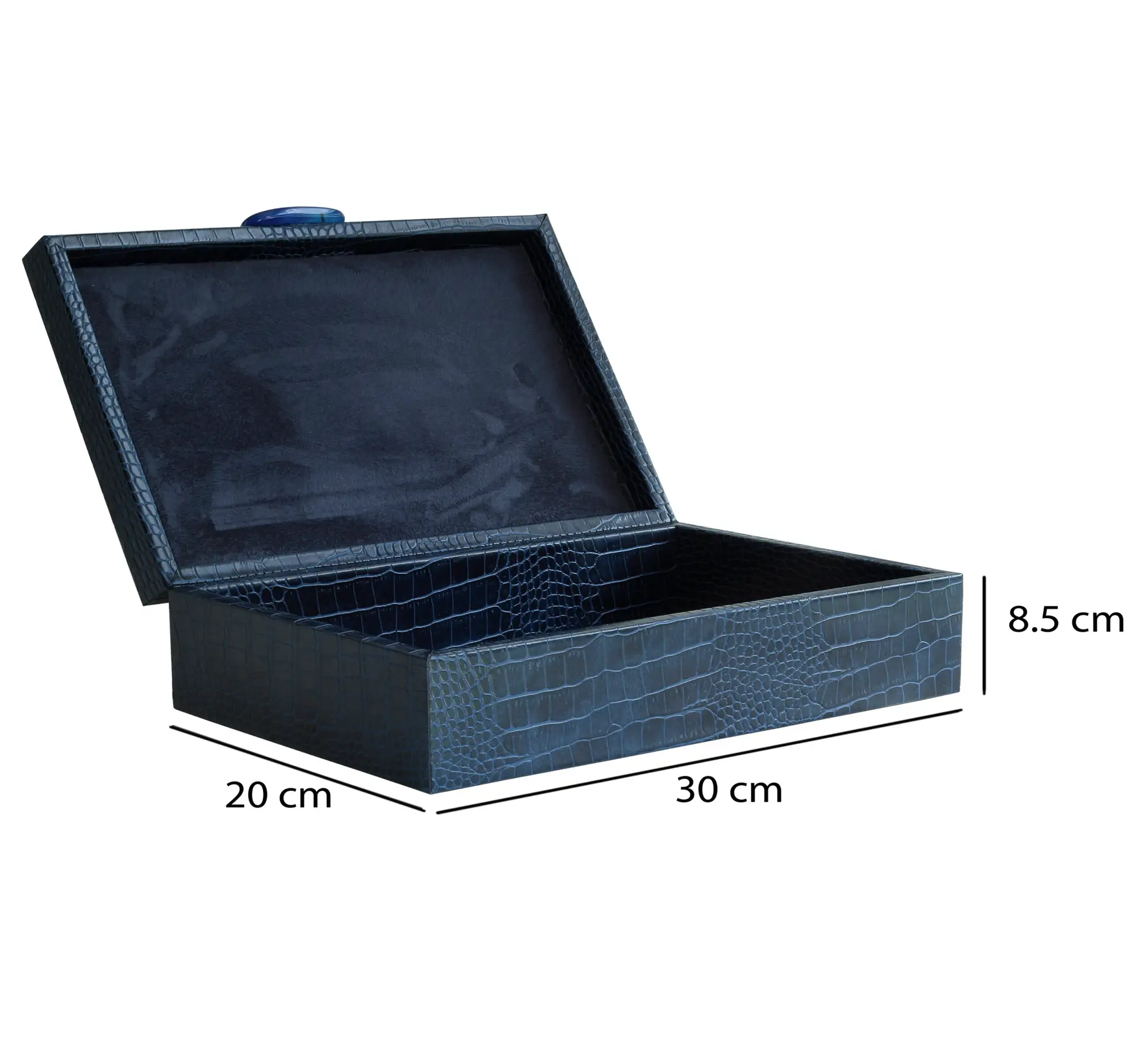 - Büyük Boy Lacivert Kroko Desenli Suni Deri Kutu – El Yapımı Dekoratif Organizer