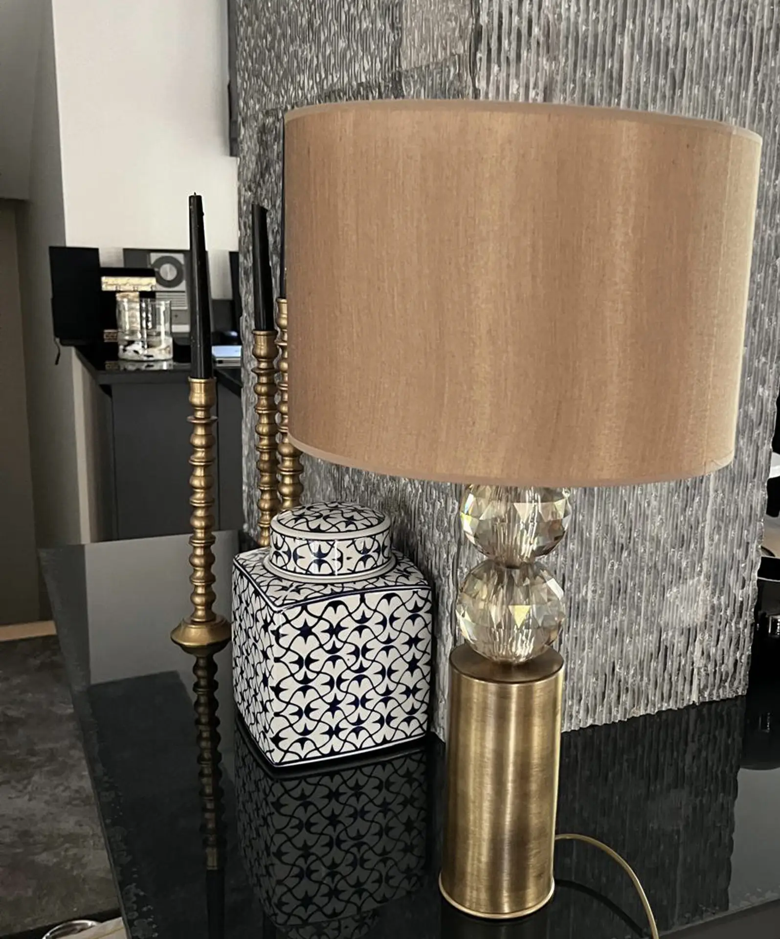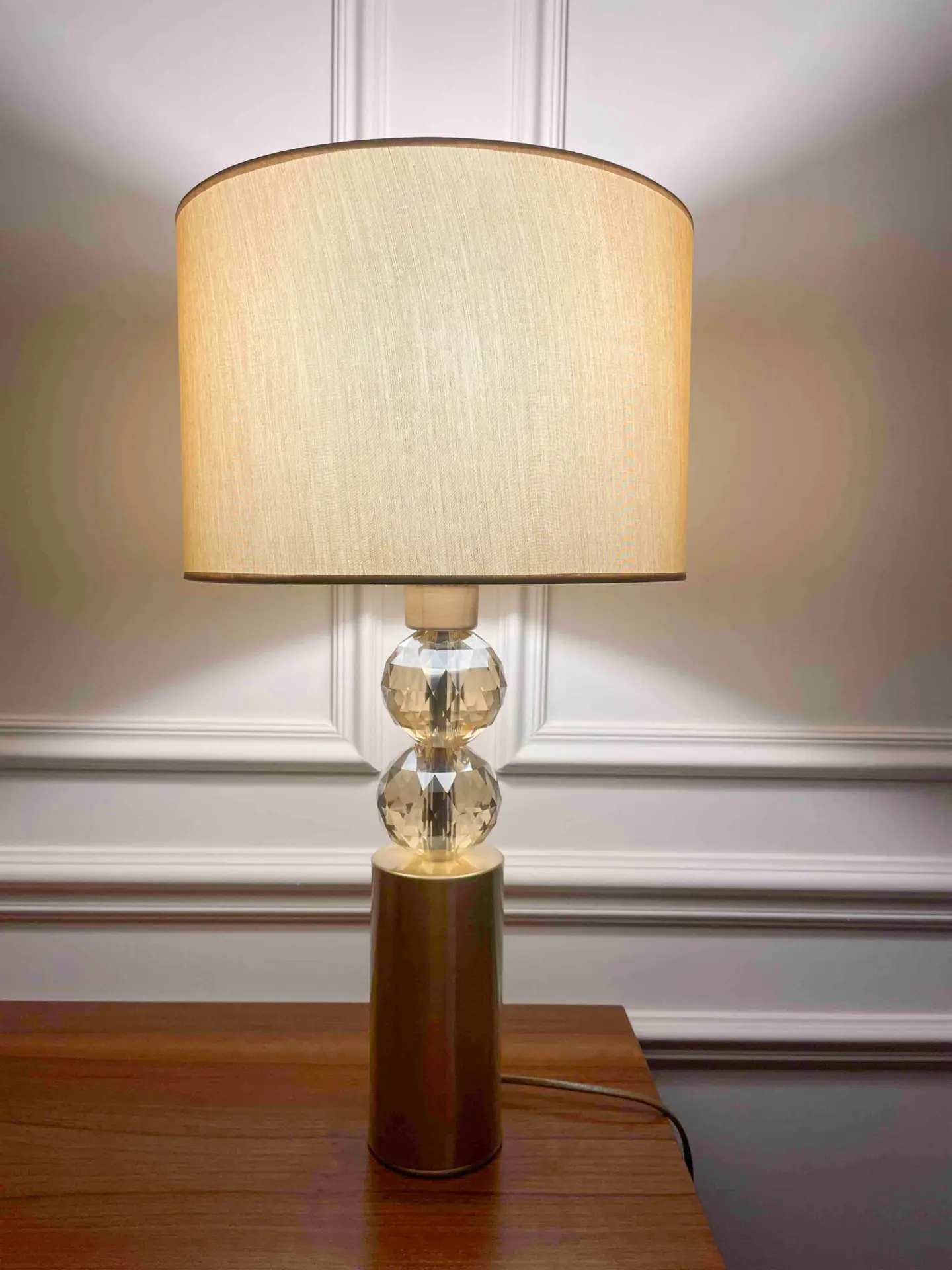 Modern Şıklıkla Buluşan Gold Kristal Masa Abajur Ev dekorasyonuna zarafet katmak isteyenler için tasarlanan bu kristal detaylı masa lambası, altın tonlarındaki silindirik metal gövdesi ve iki adet parıltılı kristal küresiyle dikkat çekiyor. Modern masa lambası kategorisinde öne çıkan bu ürün, hem yatak odası, hem de salon gibi yaşam alanlarında lüks ve sofistike bir aydınlatma çözümü sunar. Yumuşak dokulu krem tonlarındaki lambader başlığı, ışığı ideal şekilde yayarak ortama sıcak bir ambiyans kazandırır. Dekoratif masa lambası olarak kullanılabilecek bu ürün, aynı zamanda kaliteli malzemesi sayesinde uzun ömürlüdür. Bu zarif masa lambası, her türlü yaşam alanına modern bir dokunuş katmak için tasarlandı. Özellikleriyle dikkat çeker: