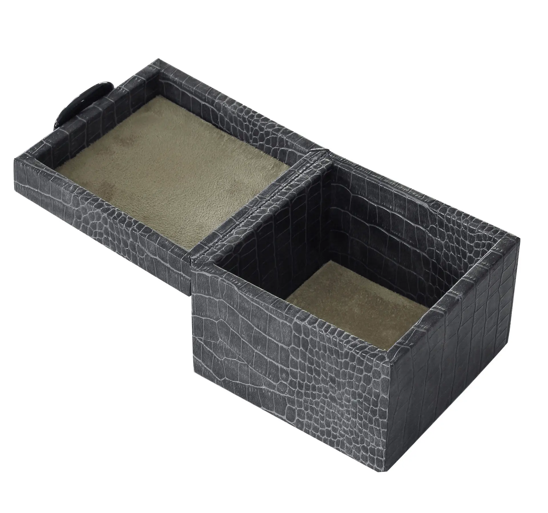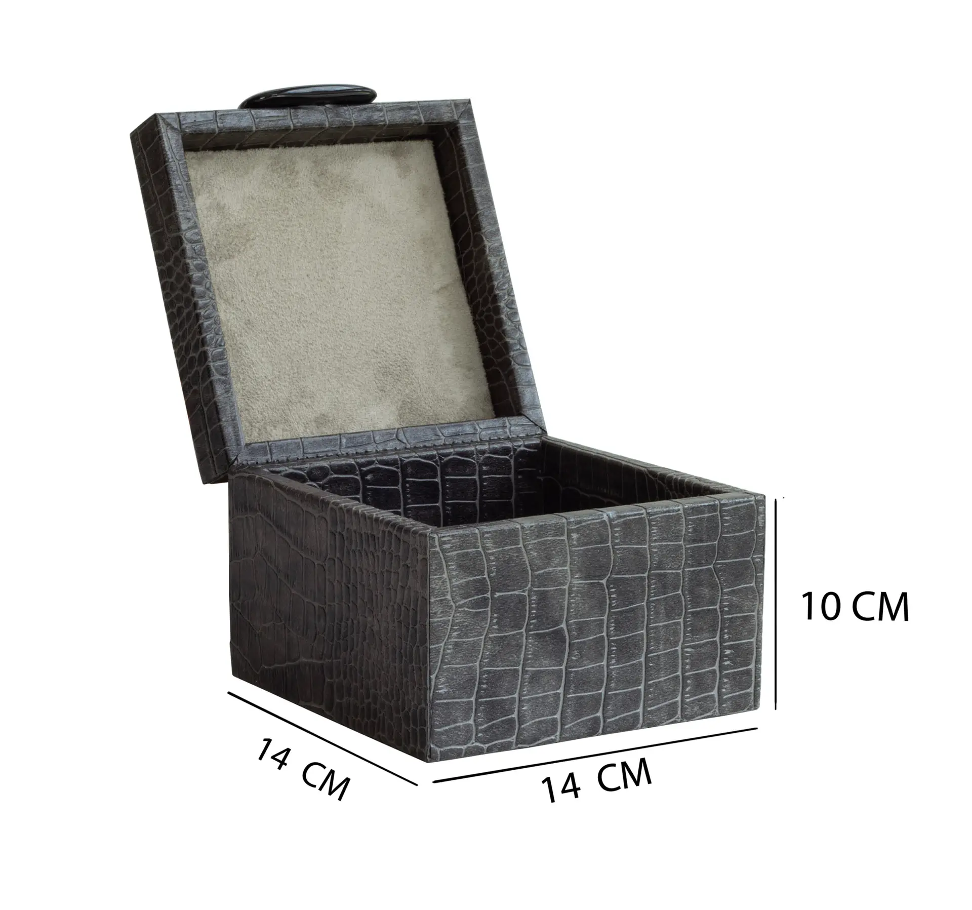 Küçük Boy Antrasit Timsah (Kroko) Desenli Suni Deri Kutu – El Yapımı Tasarım