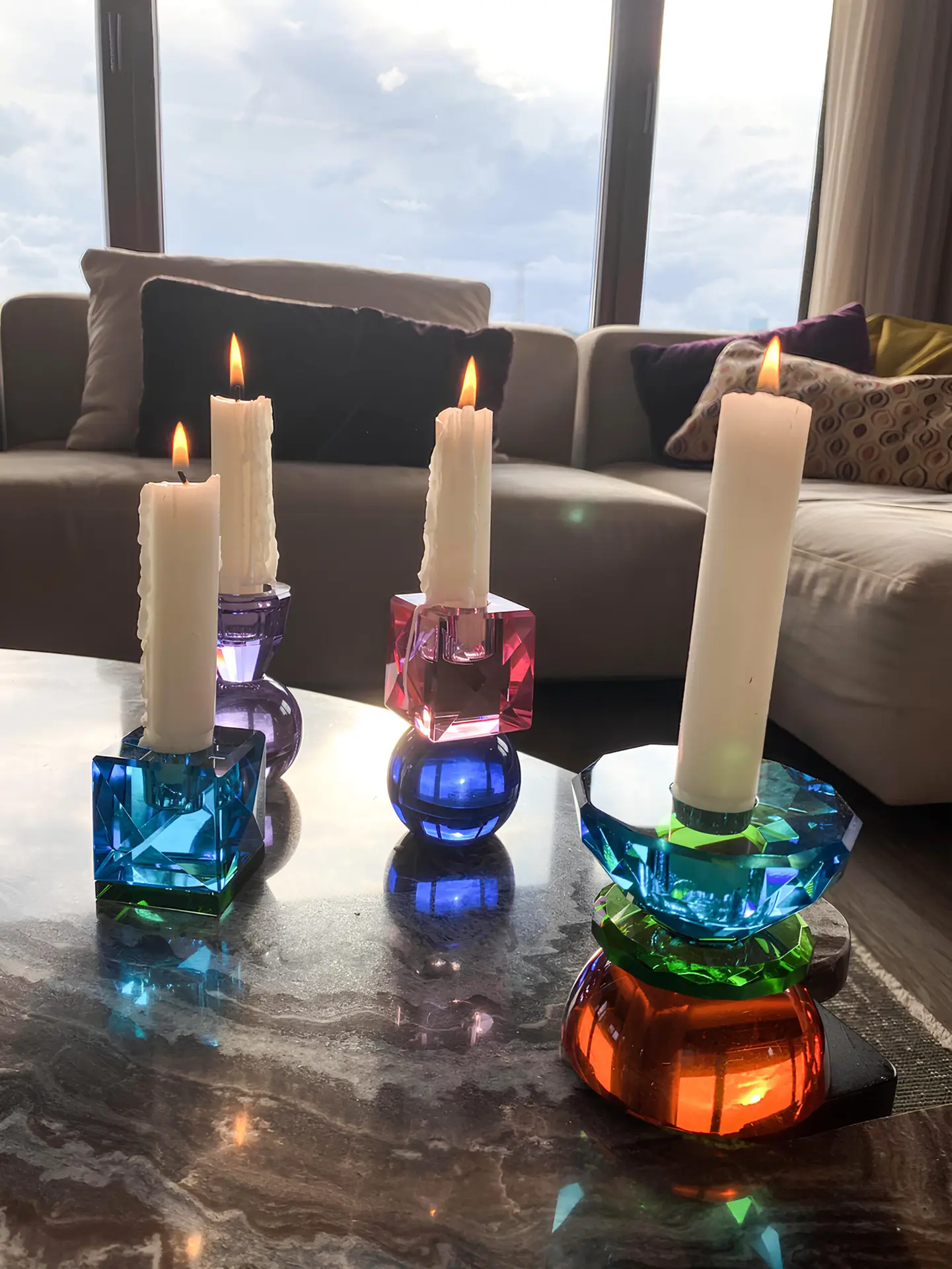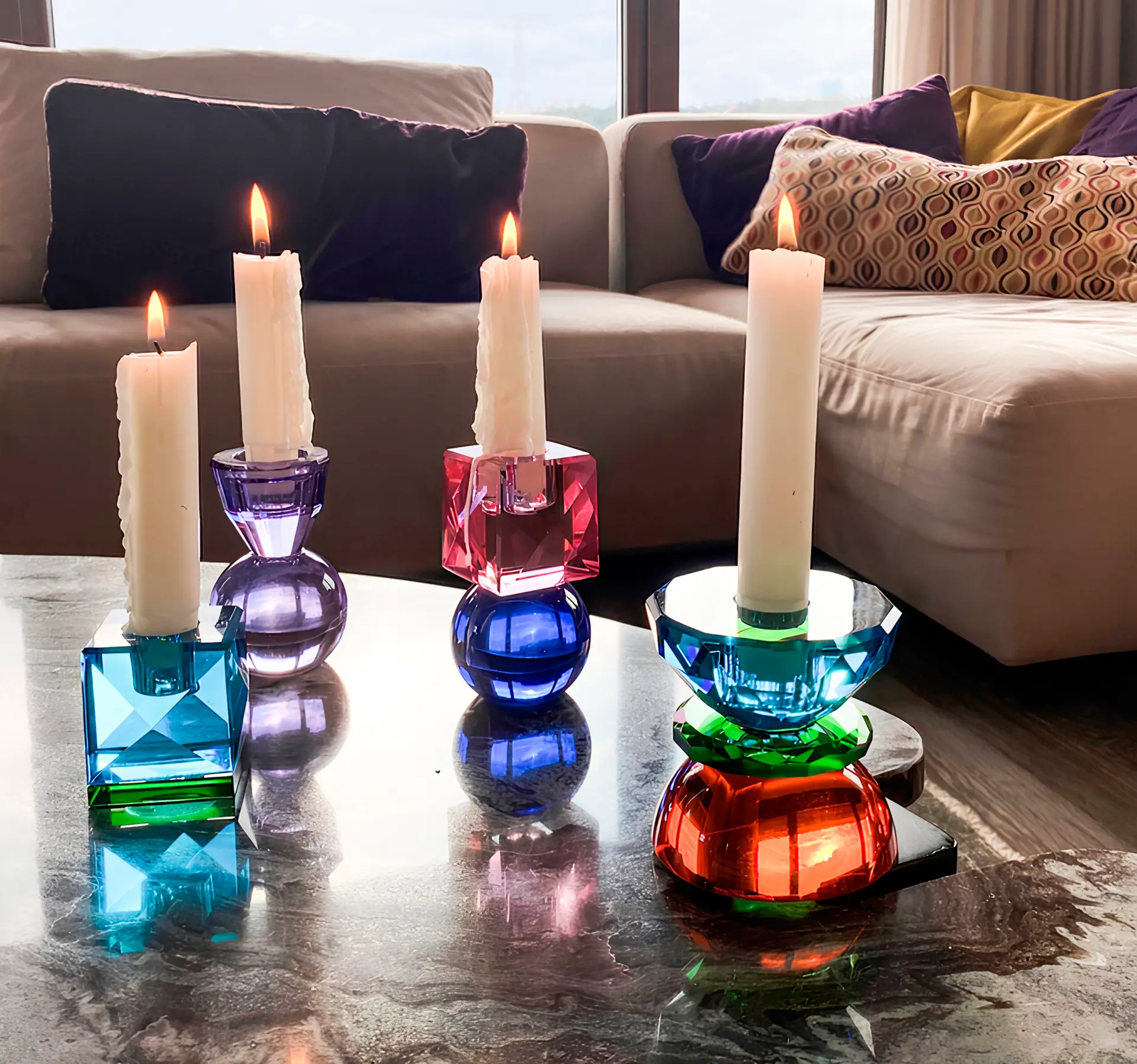SPARKLE Şamdanlar, özel kesim cam kullanılarak el işçiliğiyle üretilmiştir. Kesim işleminin ardından uygulanan özel boyama tekniği sayesinde ışığı kırarak göz alıcı bir parlaklık ve renk geçişi oluşturur. Her renk seçeneği, modern ve zarif bir dekorasyon tamamlayıcısı olarak tekli veya kombinlenerek kullanılabilir. Masa dekorasyonundan raf düzenlemelerine kadar birçok alanda şıklık katmak için idealdir. % 100 el yapımıdır.