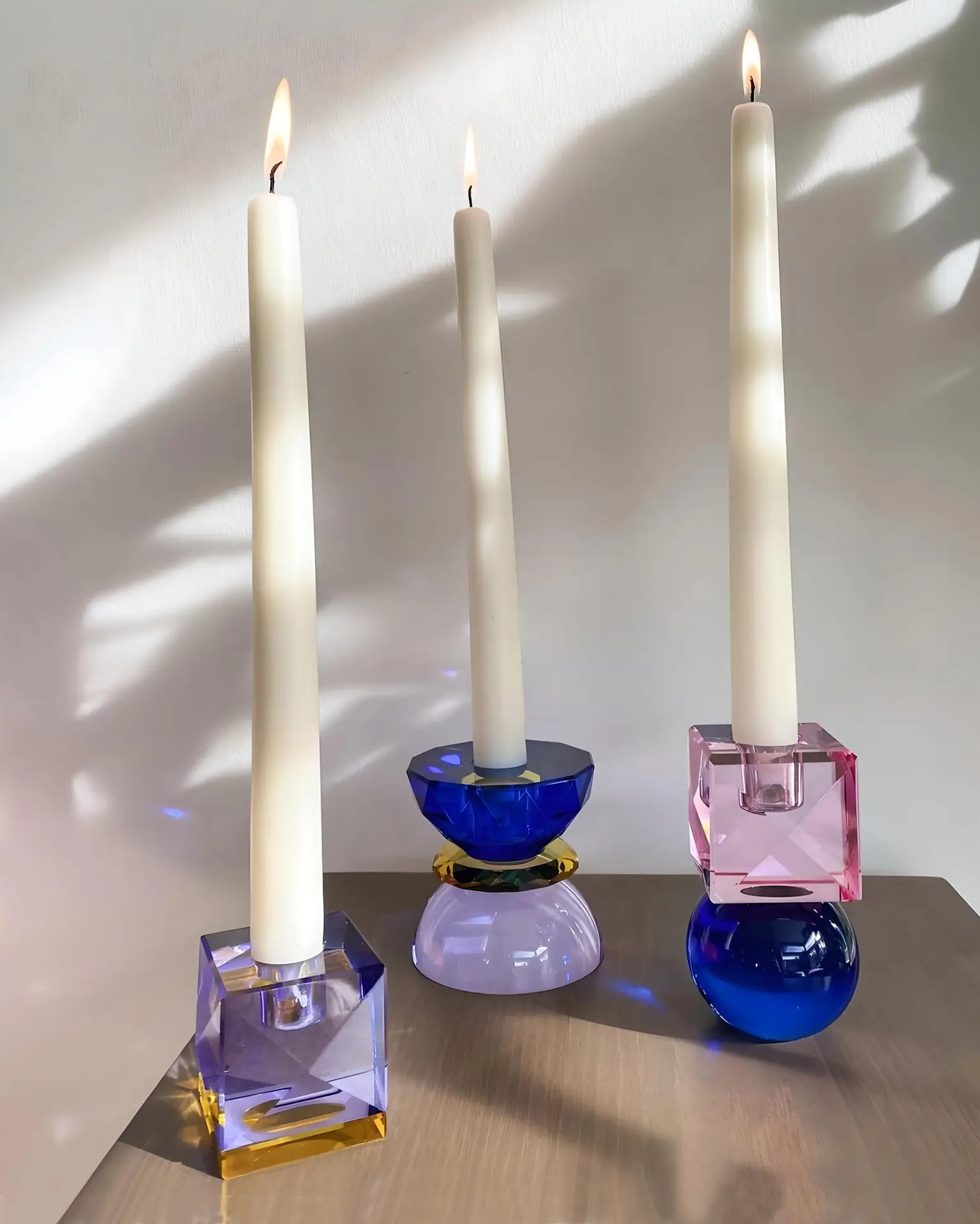 Mavi/ Pembe Cam Şamdan – Modern ve Şık Dekor Seçeneği