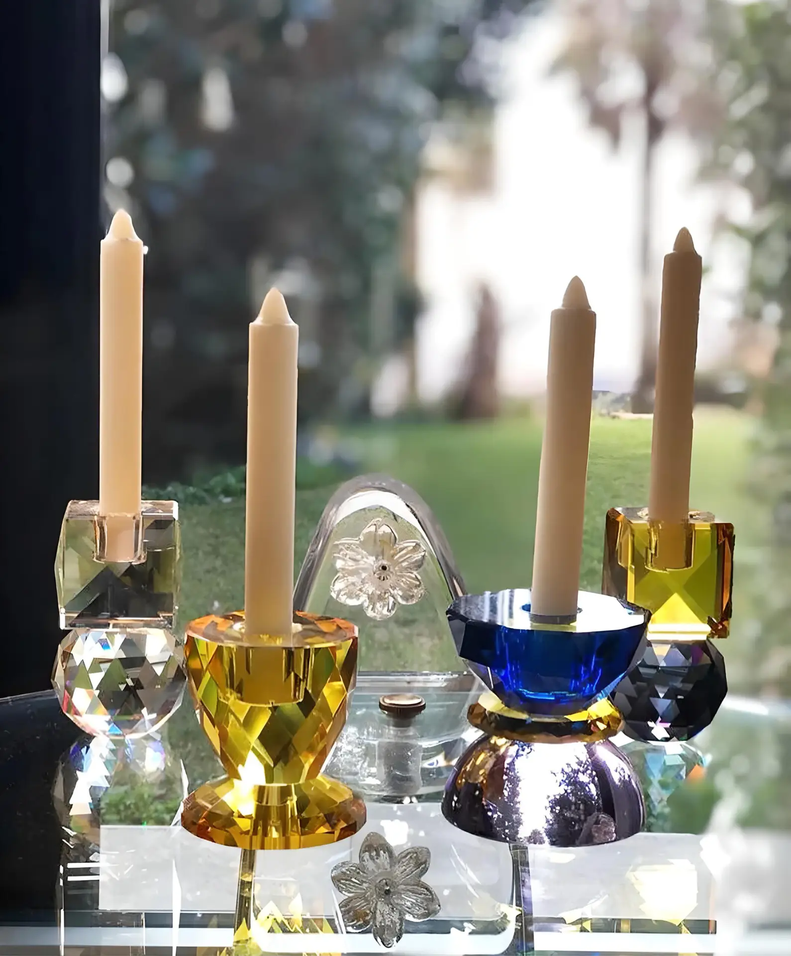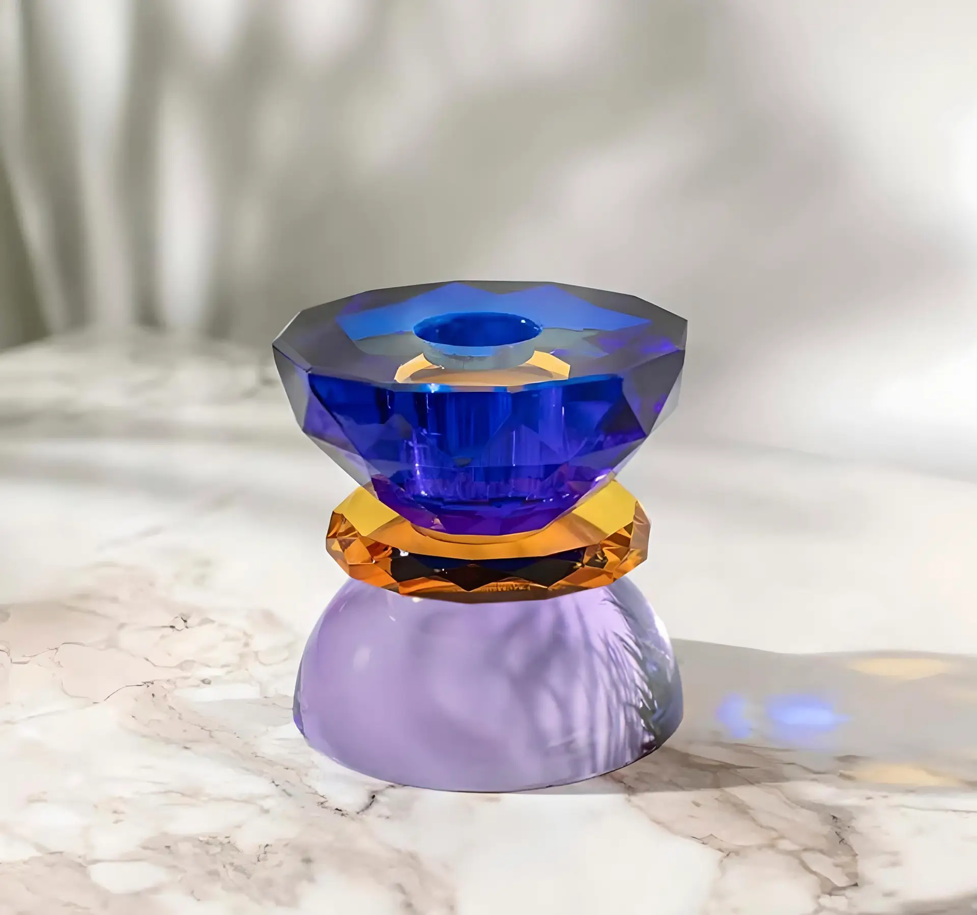Mavi/ Sarı/ Lila SPARKLE Cam Şamdan – Modern ve Şık Dekor Seçeneği