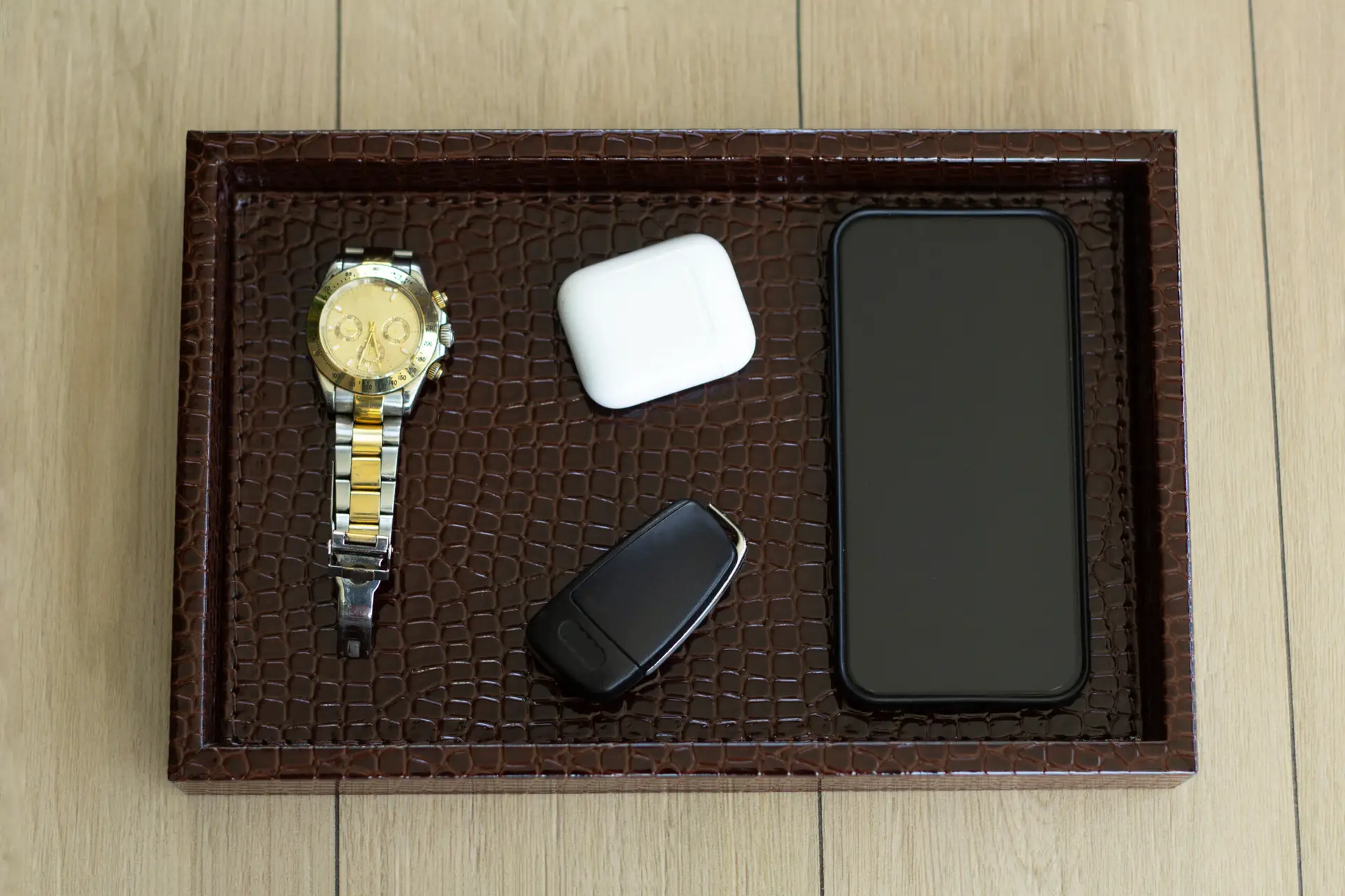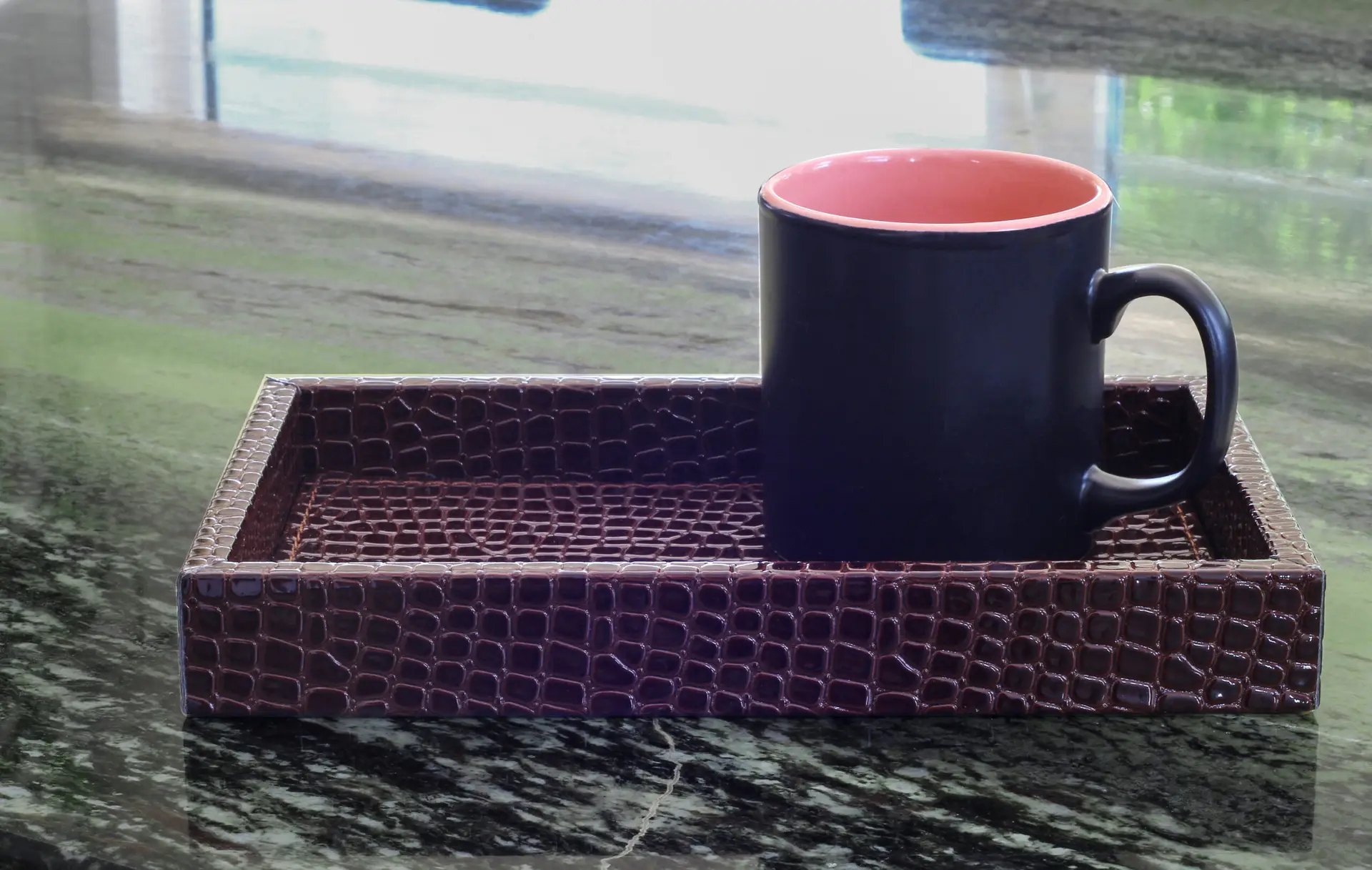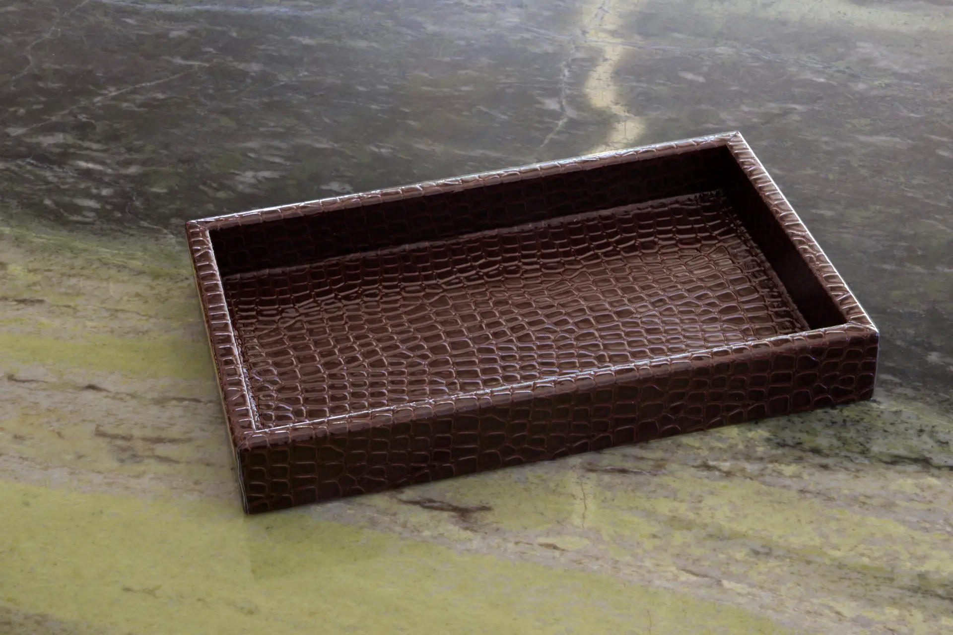 Modern Tasarım Krokodil Desenli Küçük Boy Kahverengi Tepsi