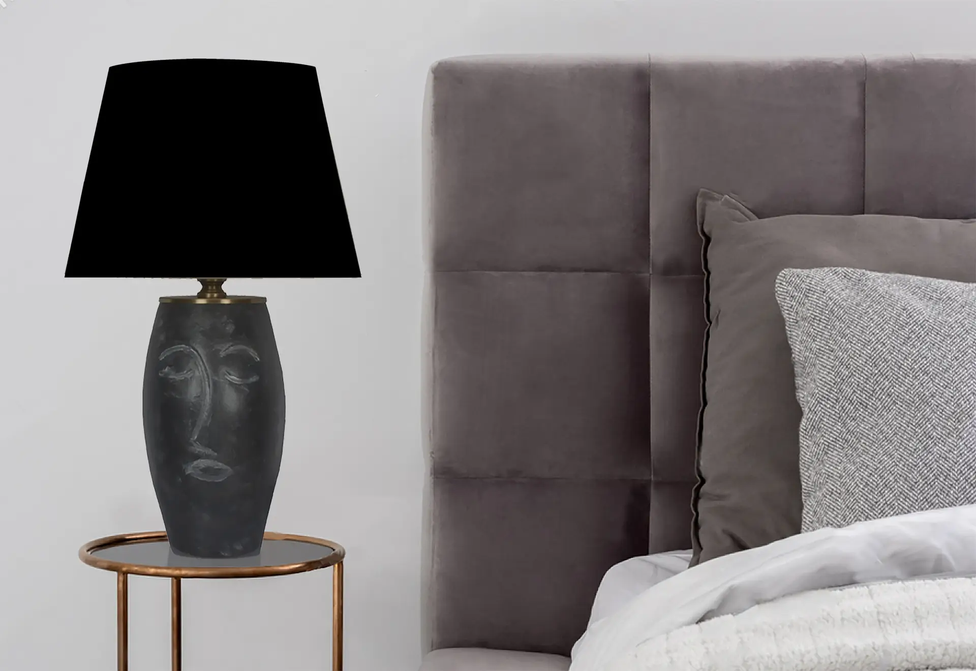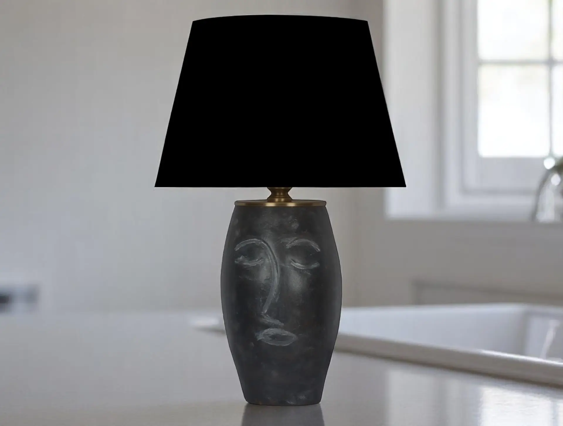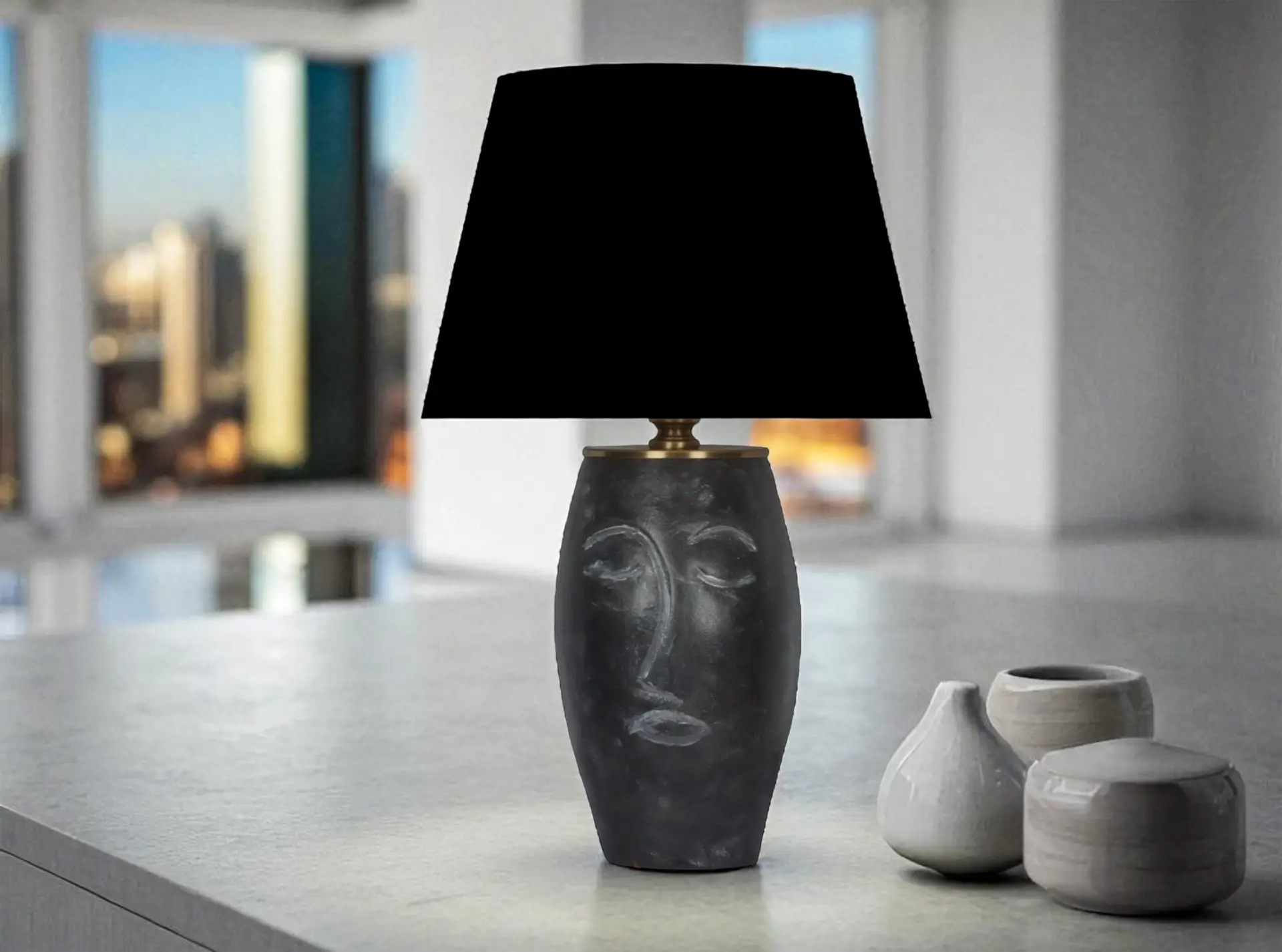 Siyah Abajurlu Yüz Figürlü Seramik Masa Lambası-Siyah Başlık