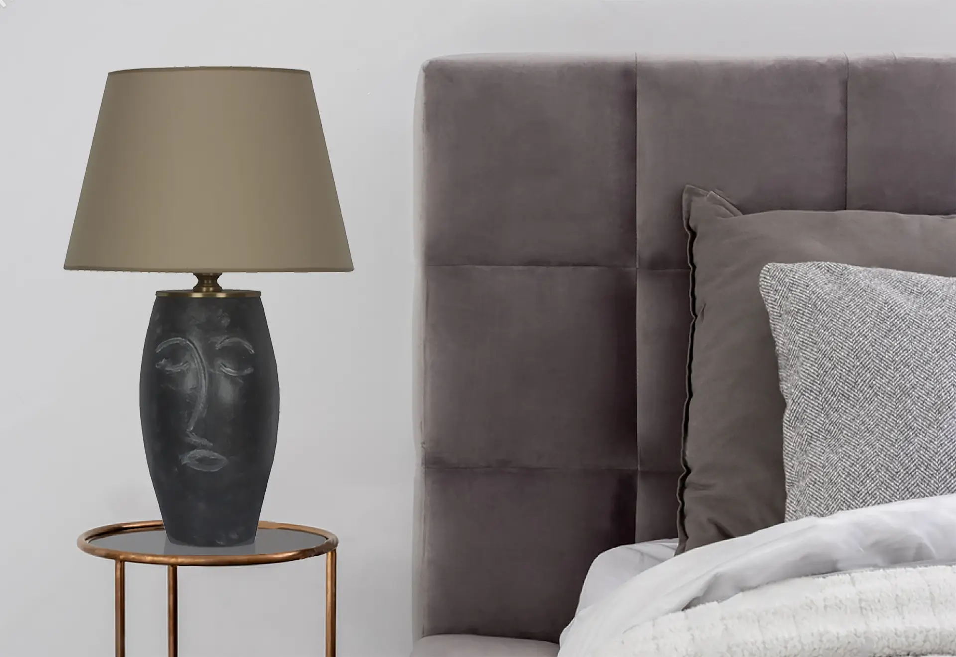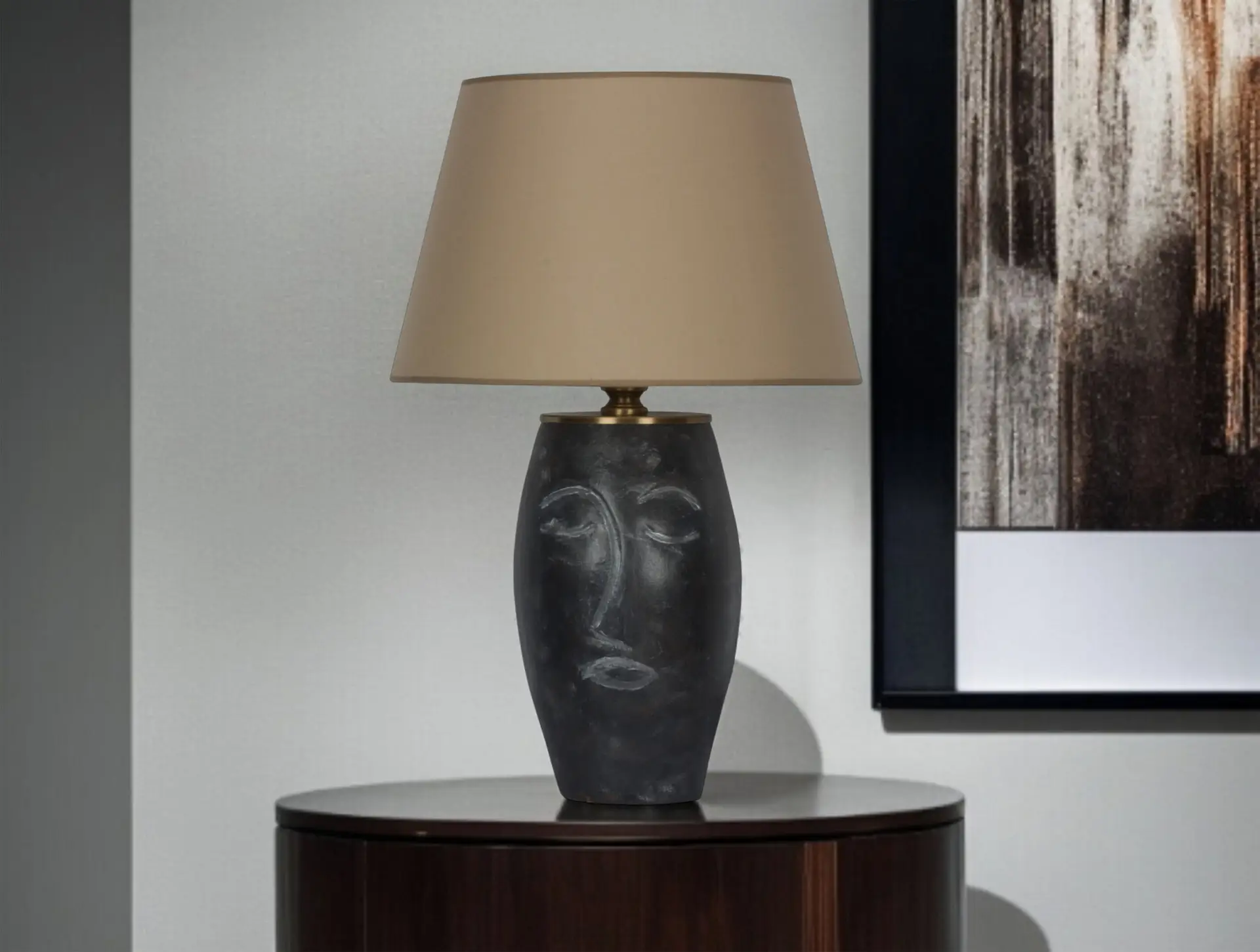 Siyah Abajurlu Yüz Figürlü Seramik Masa Lambası-Bej Başlık
