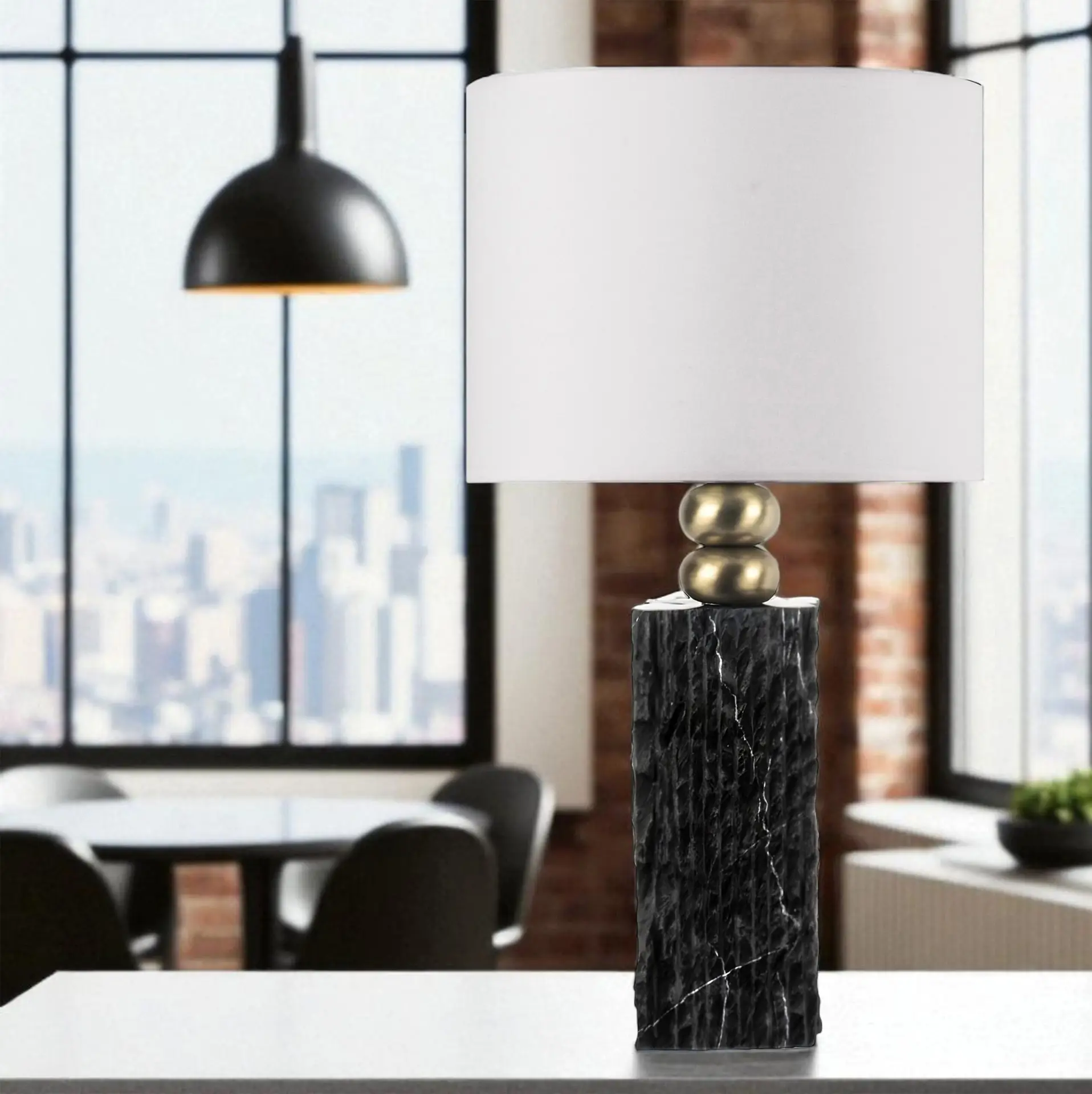 Modern Tasarım Siyah Mermer Abajur – Krem Başlık