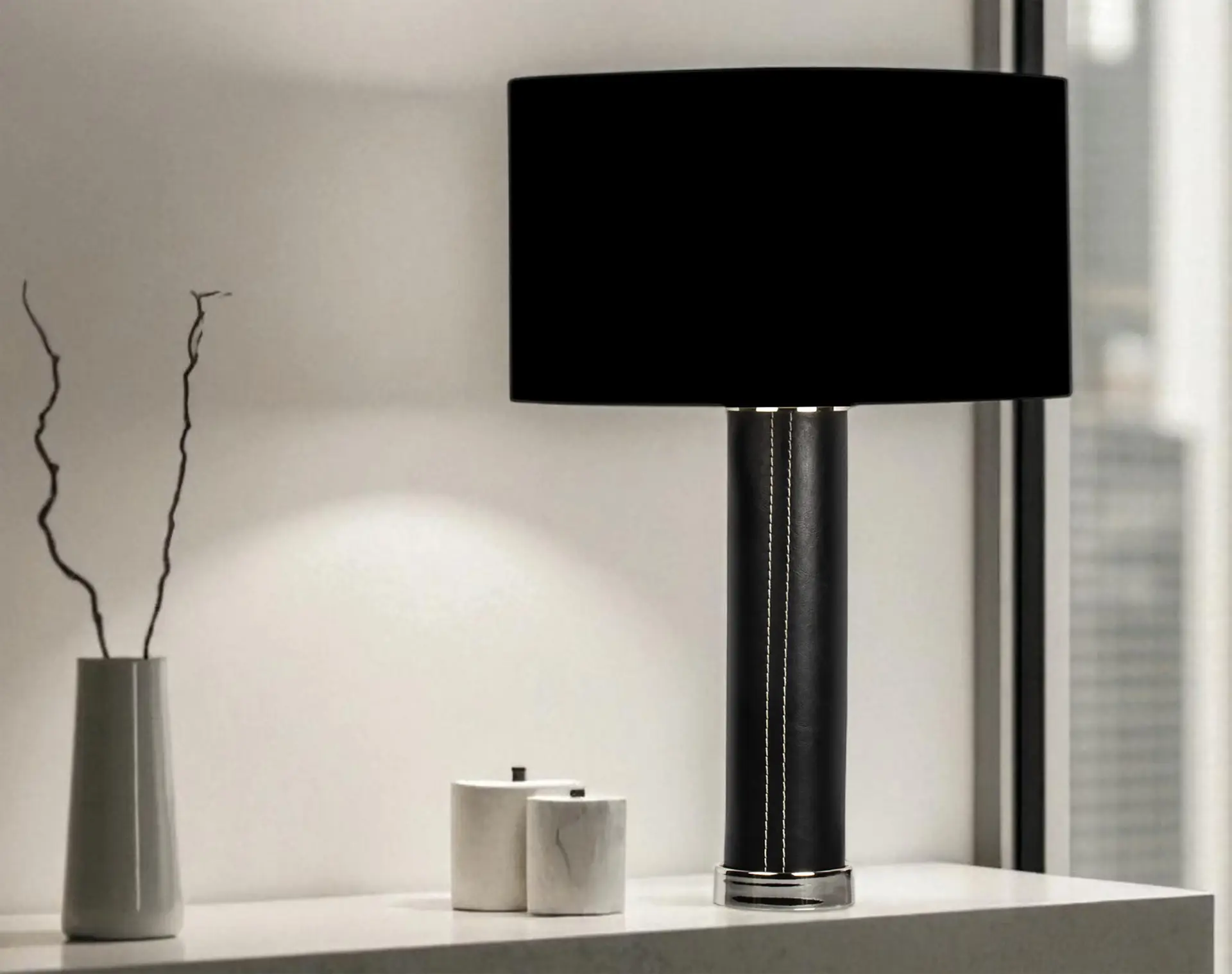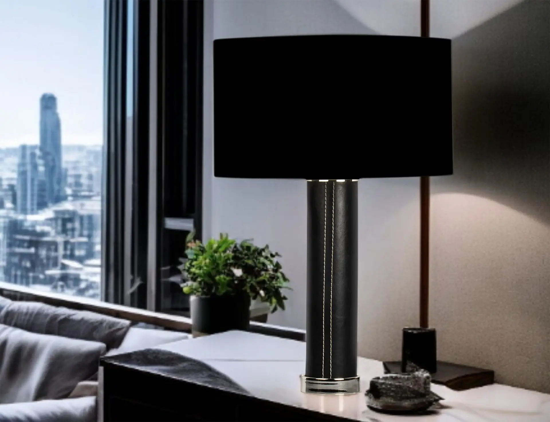 Monterey Siyah Deri Abajur: Şıklığın ve Fonksiyonelliğin Buluştuğu Tasarım