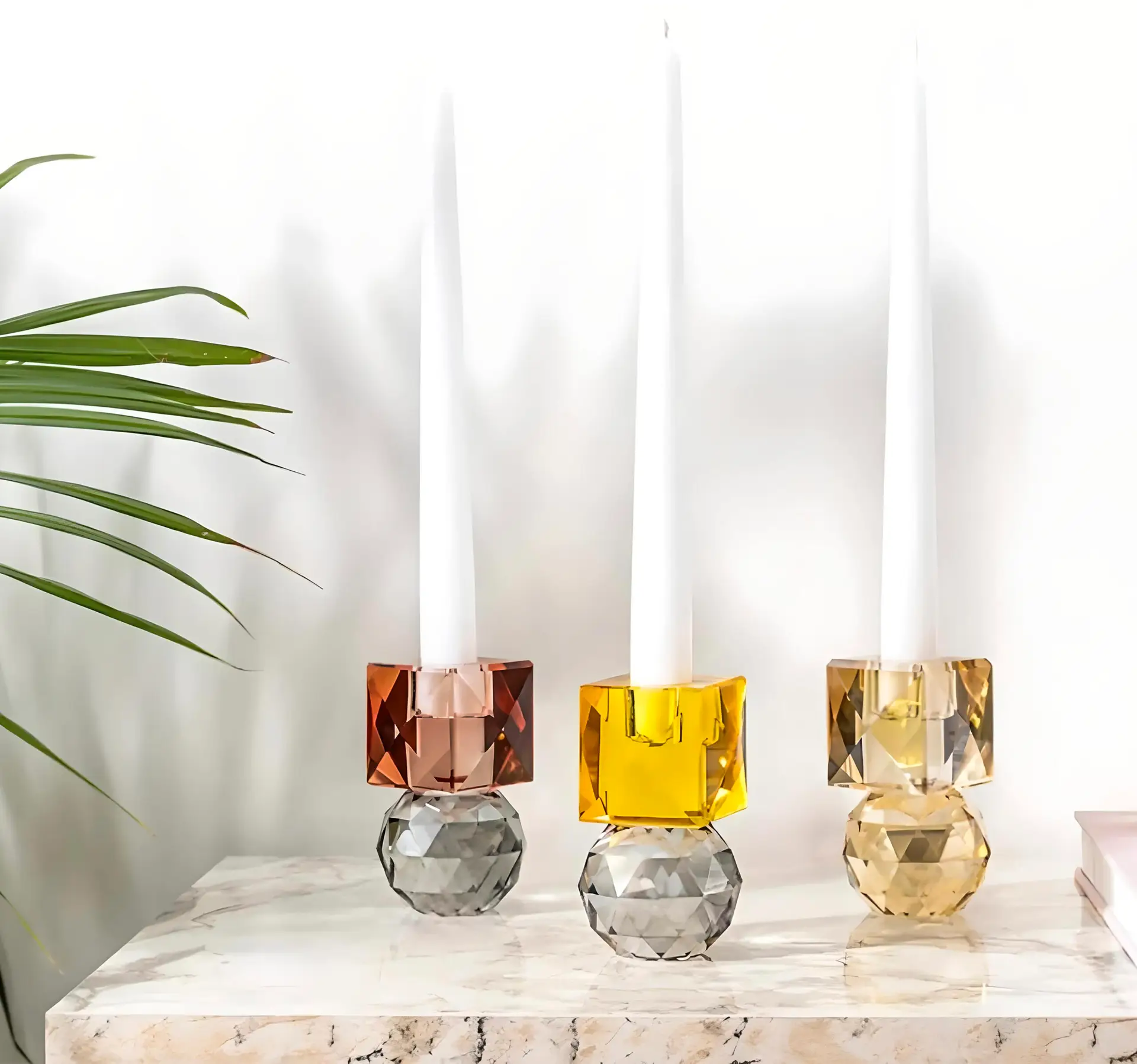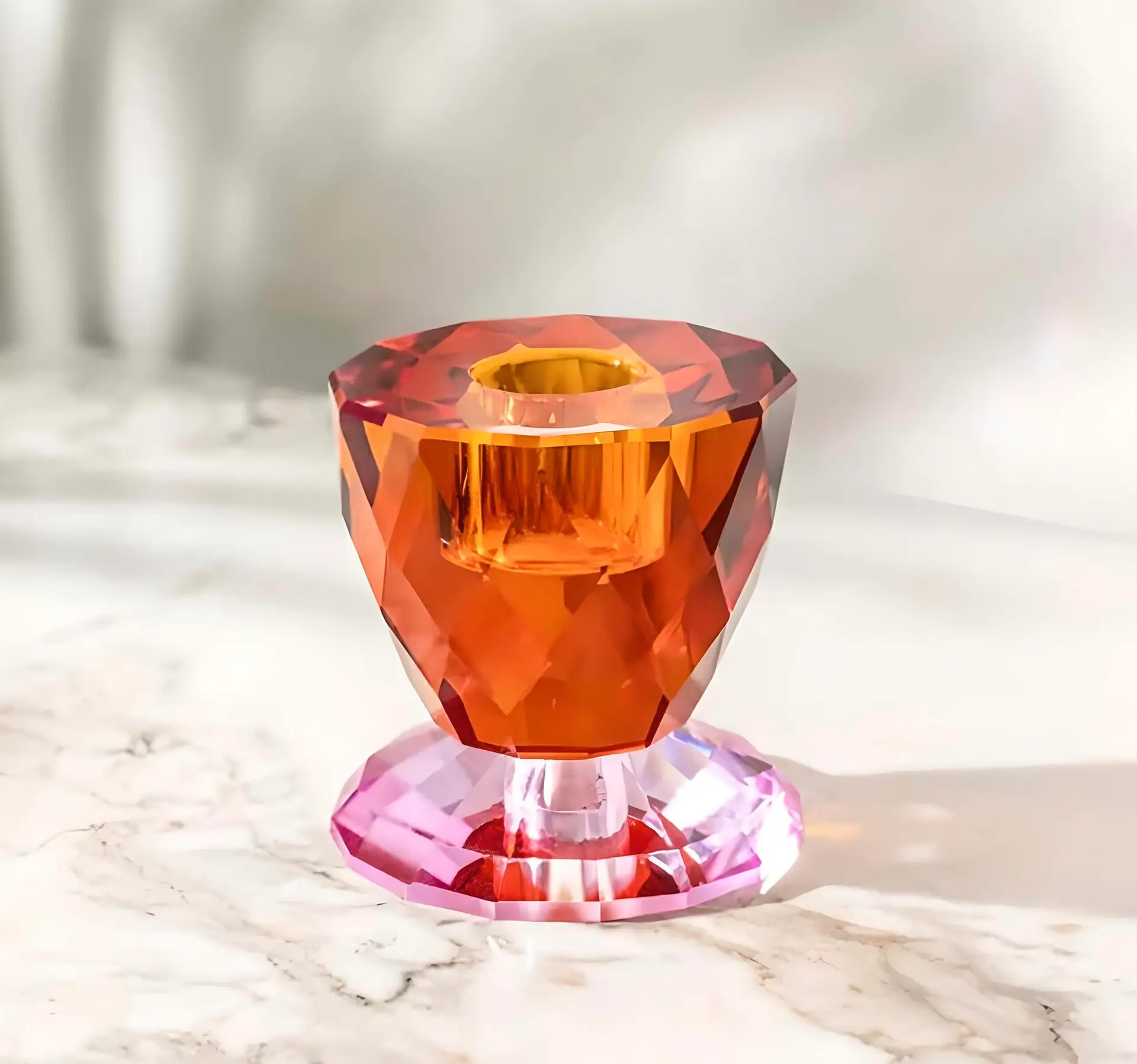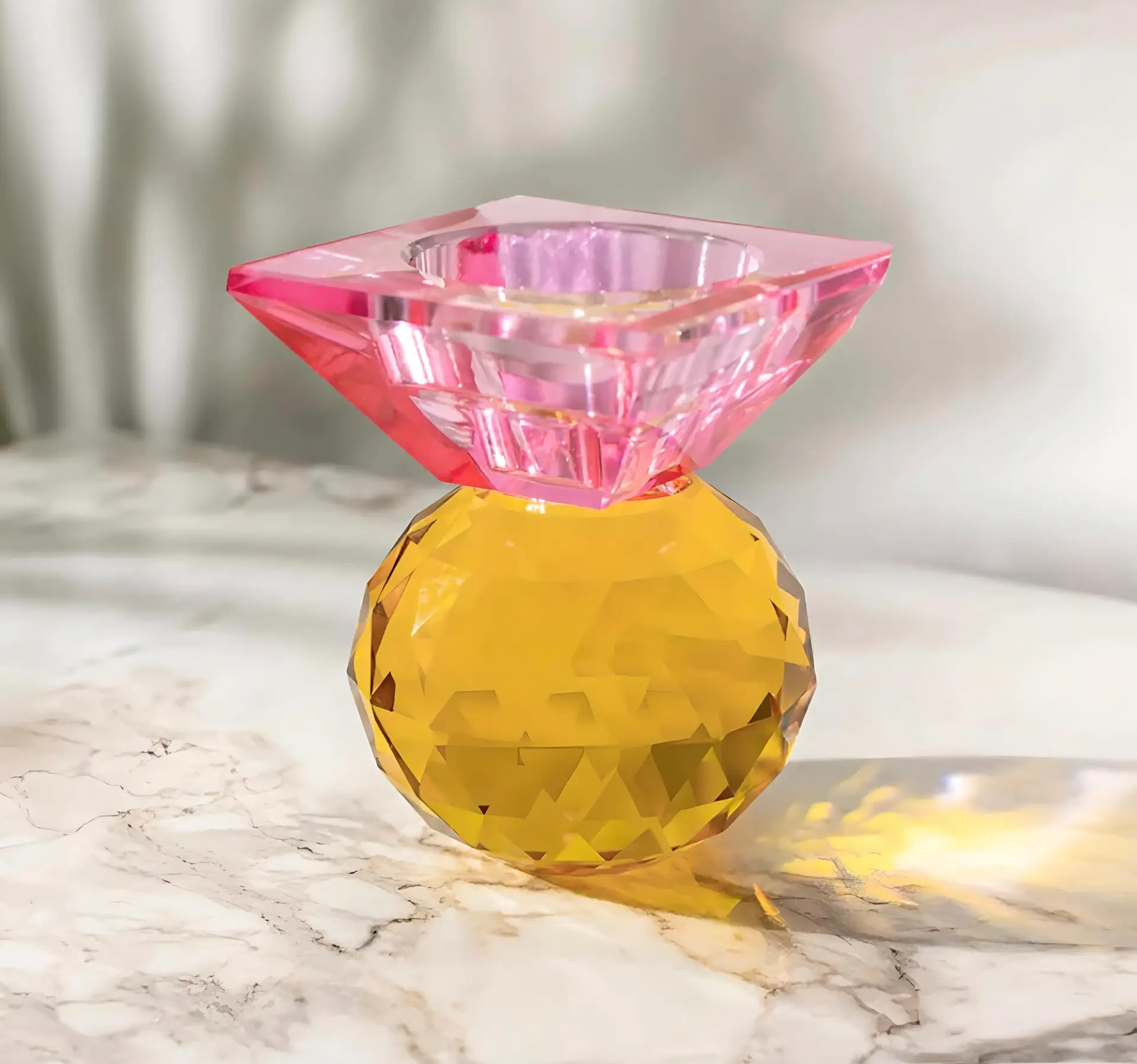 Pembe/ Sarı SPARKLE Cam Şamdan – Modern ve Şık Dekor Seçeneği