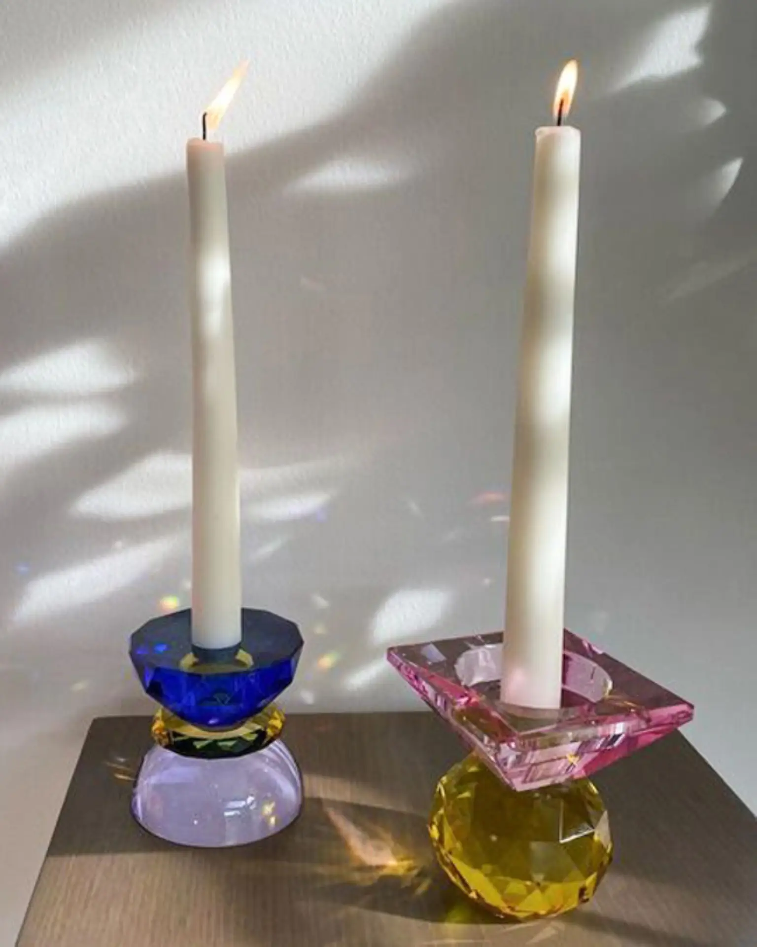 SPARKLE Şamdanlar, özel kesim cam kullanılarak el işçiliğiyle üretilmiştir. Kesim işleminin ardından uygulanan özel boyama tekniği sayesinde ışığı kırarak göz alıcı bir parlaklık ve renk geçişi oluşturur. Her renk seçeneği, modern ve zarif bir dekorasyon tamamlayıcısı olarak tekli veya kombinlenerek kullanılabilir. Masa dekorasyonundan raf düzenlemelerine kadar birçok alanda şıklık katmak için idealdir. % 100 el yapımıdır.