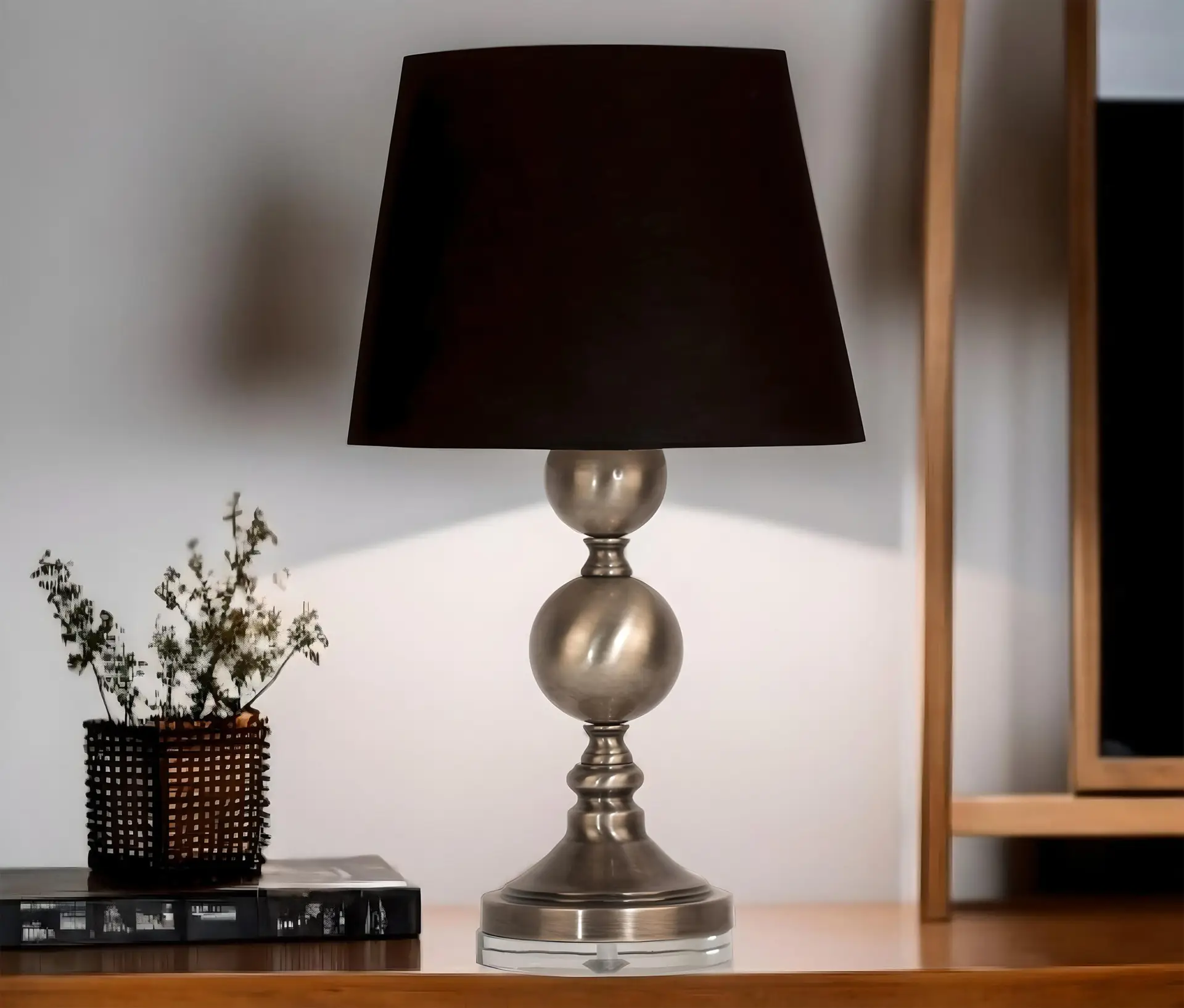 Venedik Bej Aabajur Lambası, Klasik ve Zarif bir Tasarıma sahip. Lamba Şapkası : Konik bir şekilde olup siyah renginde bir kumaştan yapılmış. Yumuşak ışık yayarak sıcak bir atmosfer sağlar. Gövde :Konik bir şekilde olup Siyah renginde bir kumaştan yapılmış. Yumuşak ışık yayarak sıcak bir atmosfer sağlar. Taban: Şeffaf Cam ve Eskite metalik bir kaideye sahip, bu da lambaya modern bir dokunuş katıyor. Bu masa lambası, klasik ve modern tasarım unsurlarını bir araya getiren şık bir modeldir. Üst kısmında geniş açılı konik bir lamba şapkası bulunur. Açık bej veya krem rengi olan bu şapka, ışığı yumuşatarak ortamda sıcak bir hava yaratır.