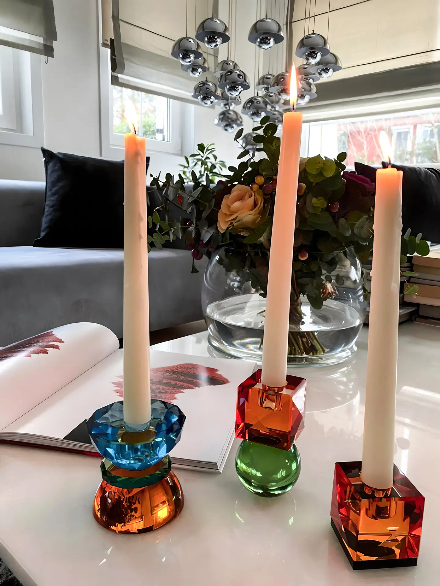 SPARKLE Şamdanlar, özel kesim cam kullanılarak el işçiliğiyle üretilmiştir. Kesim işleminin ardından uygulanan özel boyama tekniği sayesinde ışığı kırarak göz alıcı bir parlaklık ve renk geçişi oluşturur. Her renk seçeneği, modern ve zarif bir dekorasyon tamamlayıcısı olarak tekli veya kombinlenerek kullanılabilir. Masa dekorasyonundan raf düzenlemelerine kadar birçok alanda şıklık katmak için idealdir. % 100 el yapımıdır.