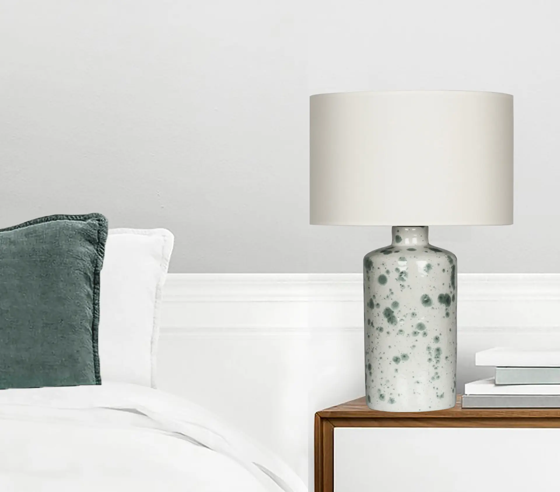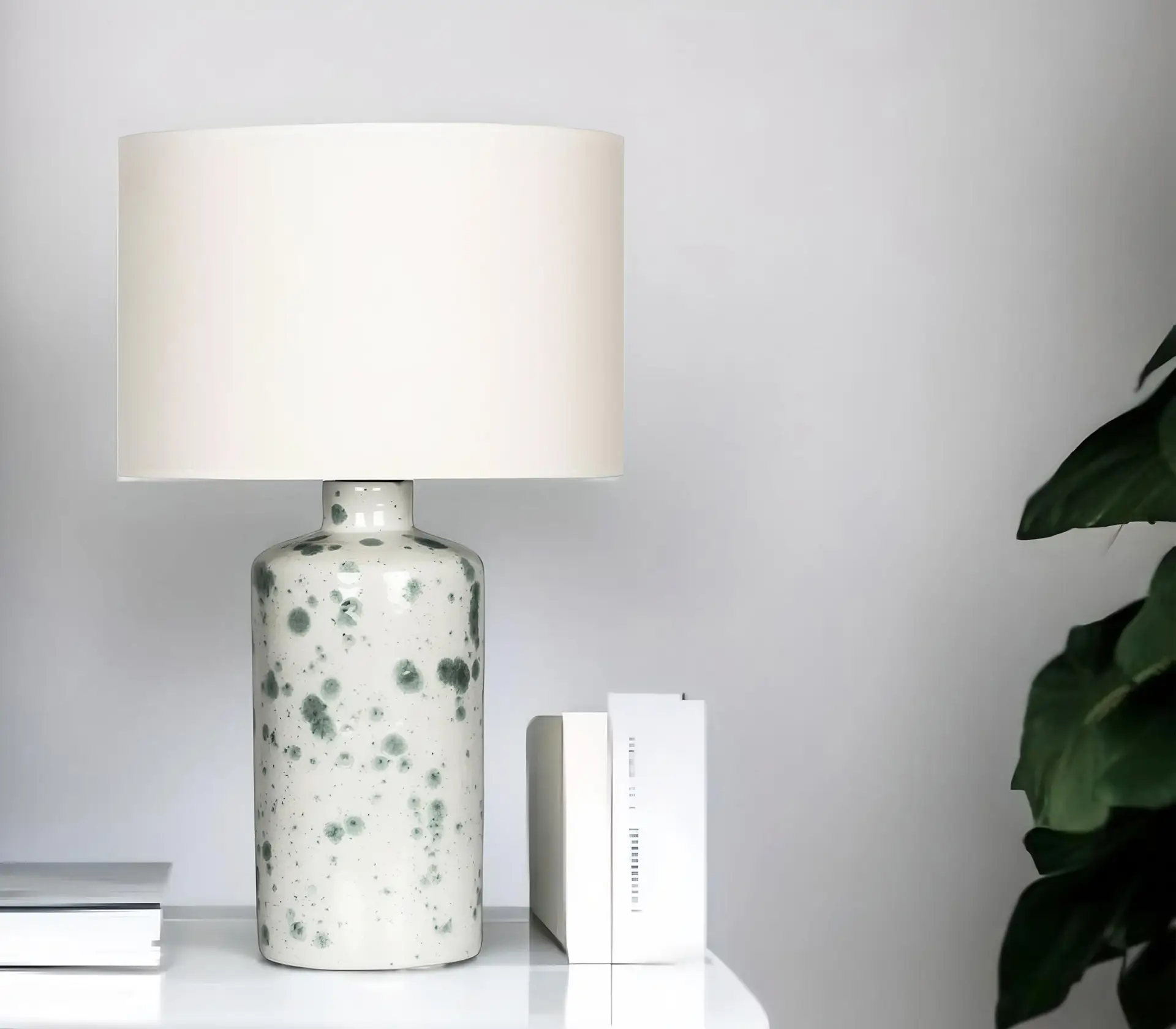 Yeşil/Krem Renk Polka Seramik Abajur -Krem Başlık